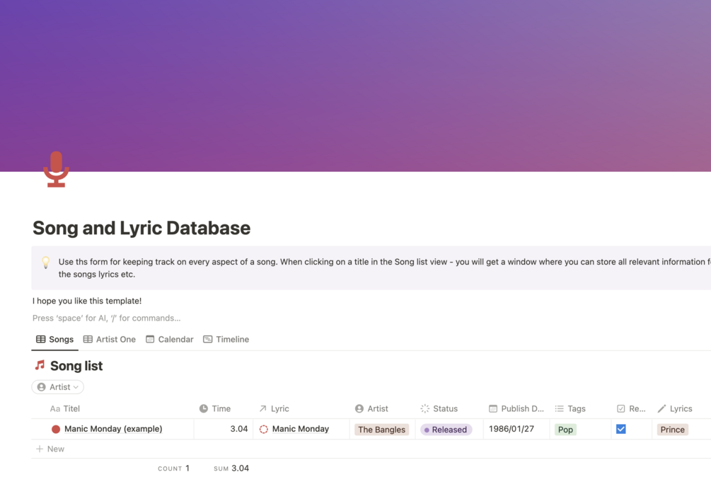 Notion Song and Lyric Database